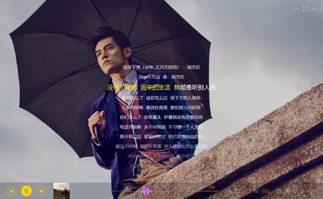 《说好不哭》无损可以在电脑上播放,可以选择无损音质播放和蓝光MV,都是没有没有问题的。